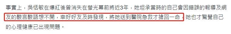 至于为什么没有当时就公开这件事,而是时隔多年才说出来,吴恬敏也在采访中做出了回应。