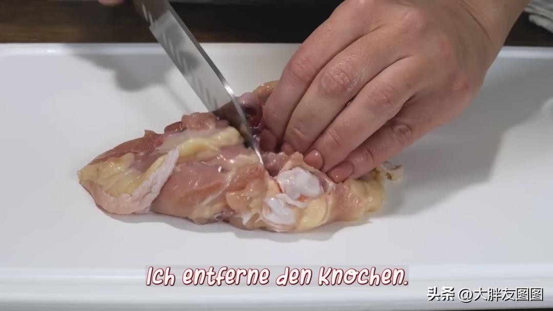准备1只鸡腿,把骨头取出来,然后切碎鸡腿肉。