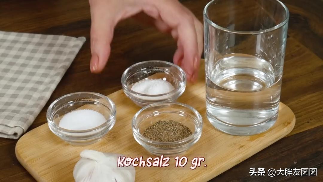 食盐10 克 小苏打10 克。混合调味料4克(黑胡椒粉,大蒜粉)