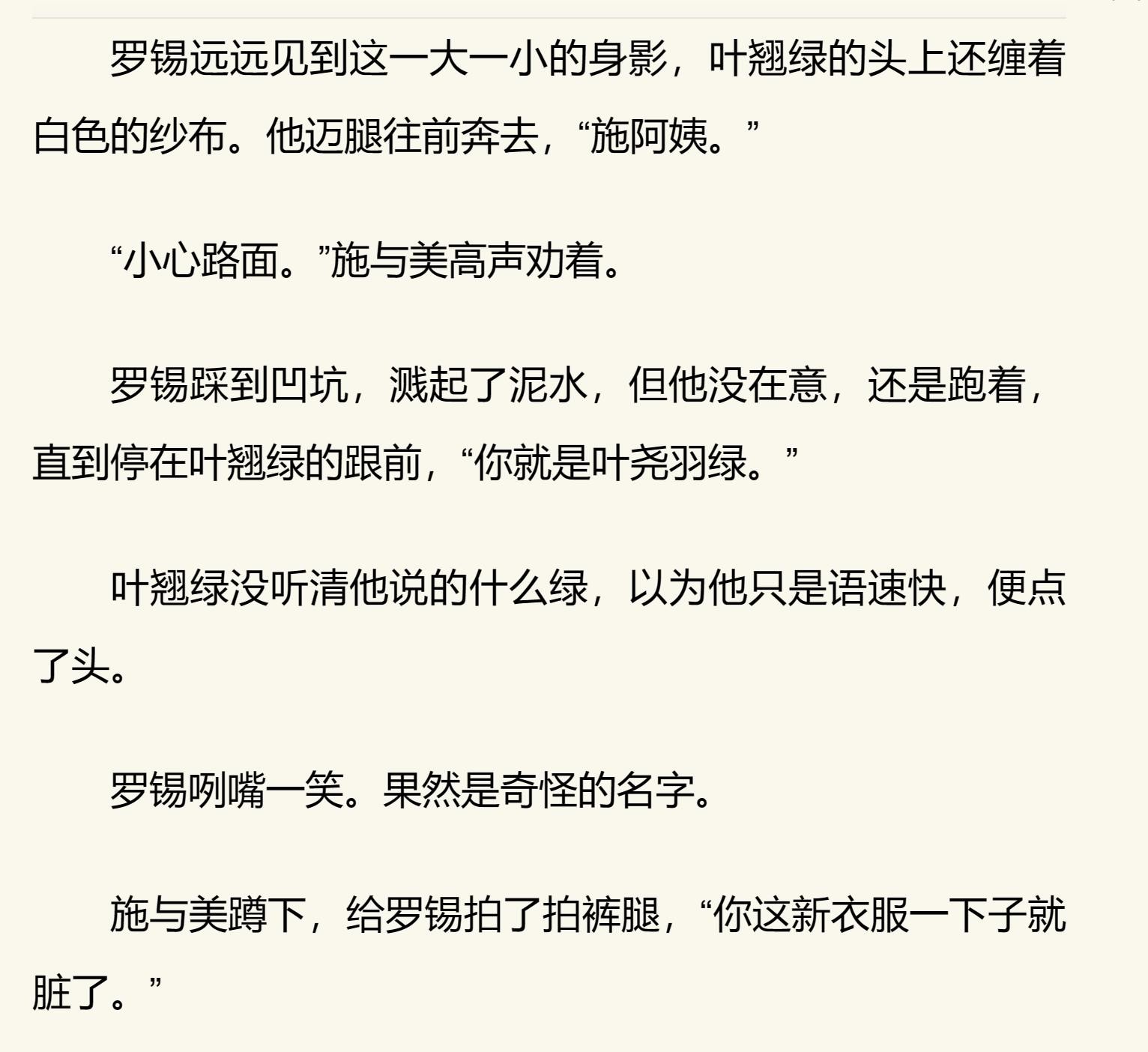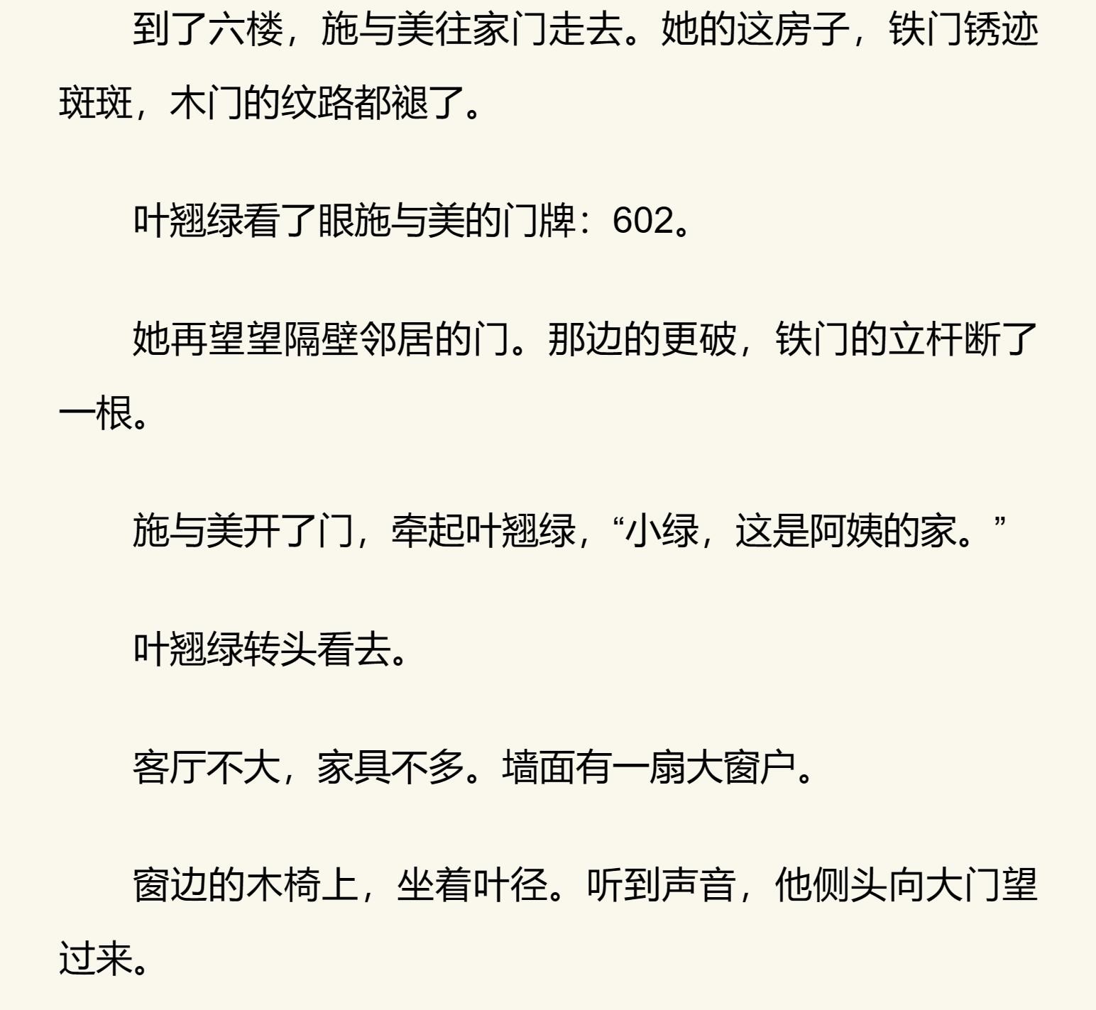 叶翘绿从小到大,一直在追随叶径的背影。叶径有些“自闭儿”,话少到不能再少,也是妖艳禁欲型,但是个学霸。叶翘绿是个脸圆圆的,性格可爱的女生。周围的人都对叶翘绿很好,也很宠。在生活中叶翘绿有点大大咧咧,有点糊涂的人,但在学业中聪明,刻苦。叶翘绿有个当建筑师的梦想,而叶径愿意陪伴她完成梦想。