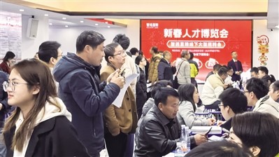 本次招聘会聚焦日益兴起的新兴产业,涉及智能制造、新一代电子信息技术、新能源等多个领域。现场人潮涌动,企业招聘展位前排起了长队,求职者们忙着向HR咨询岗位信息,互换名片。
