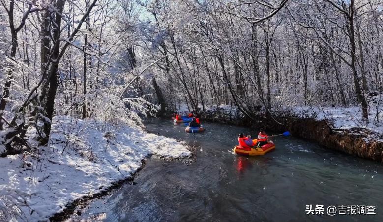 在不结冻的“矿泉水河”上顺流而下,穿越林海,体验刺激的同时还能赏两岸雾凇。游客置身冰雪的世界,短暂的周末也变得有趣。
