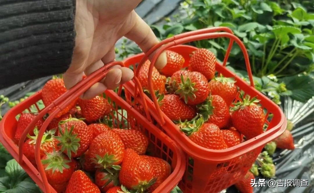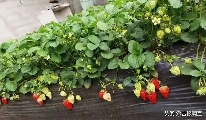 眼下,正是草莓盛果时。白山市大华村鸿泰山野菜种植基地里,翠绿的叶子下,挂满了红艳艳的牛奶草莓,吸引了许多游客采摘。