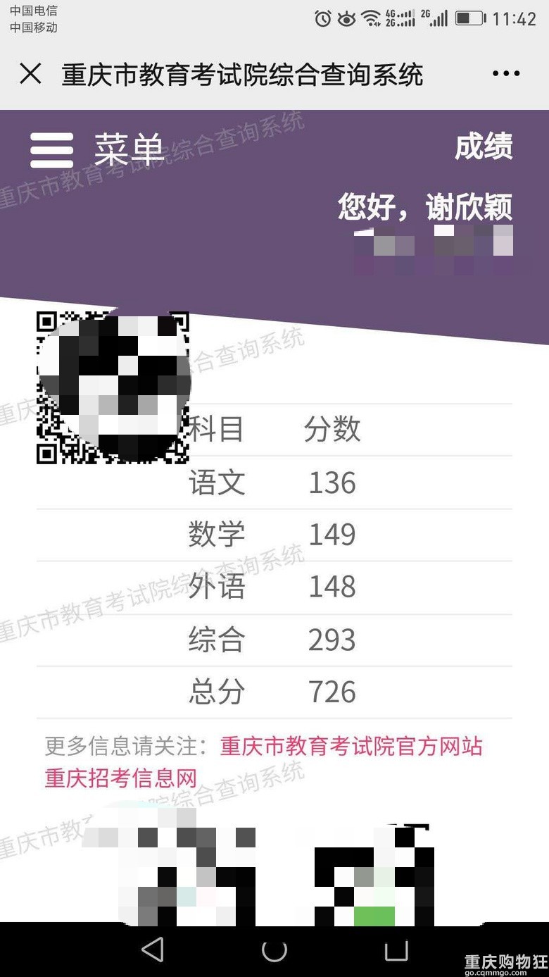 据悉,2017年中考,重庆八中宏帆初级中学校谢欣颖同学以 总分727.5分获得中考第一名