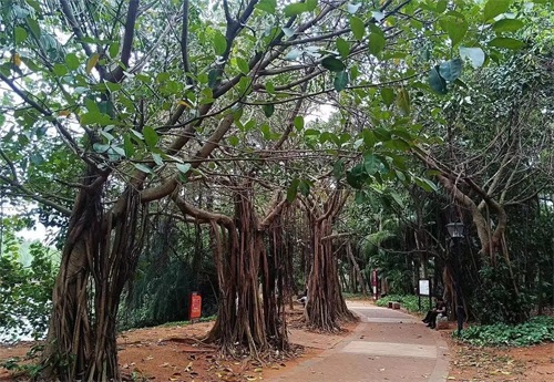 海风很大,加上每年或大或小的台风,所以公园靠海边大量种植热带植物,密密麻麻,随风起舞,婀娜多姿。