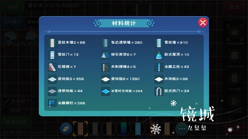 今天公布的图纸,来自梨梨最新的满级家园建筑《镜城》,是一款冰雪建材为主的城堡式家园。
