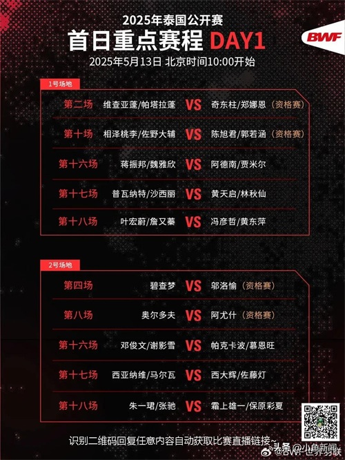 泰国羽毛球公开赛首日主要赛程表: