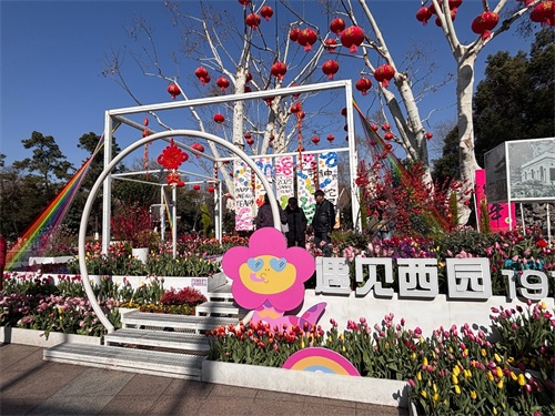 据介绍,此次中山公园展出了20个品种、40000株郁金香,设有卡通蛇元素场景和艺术装置。花展从1月24日开始布展,花展位于南大门、中山广场、喷泉广场等地,将持续到2月24日。