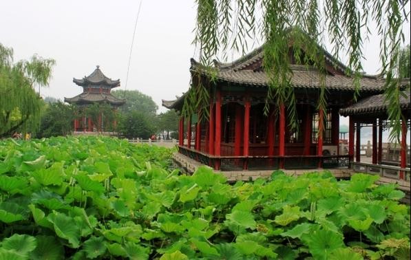 济南大明湖精华景点之铁公祠,“四面荷花三面柳”就出自这里