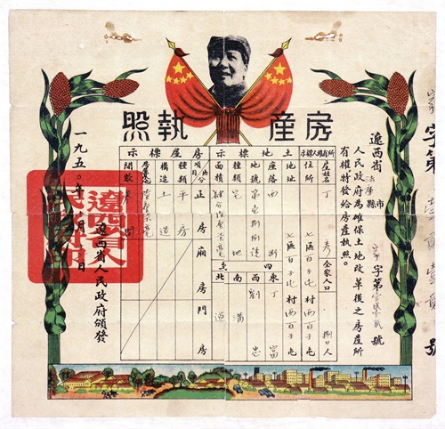 1950年的房产执照带有新中国建国后的鲜明时代特色
