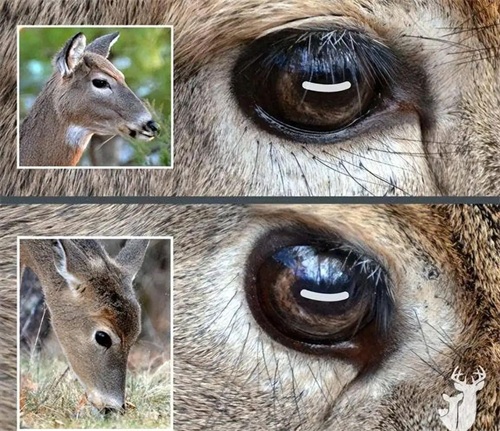 第8张:《鹿的水平瞳孔作用》:鹿和其他具有水平瞳孔的食草动物在吃草时会转动眼睛,使瞳孔与地面保持平行,从而快速发现捕食者。