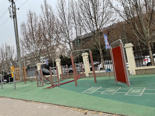 最南边的位置,是一片间隔开的健身器械区域,这里的器械粗看就有十多种。我记得颇有几位大爷有他们各自的绝活,他们那些抡胳膊、压腿的高难度动作,彰显了他们运动达人的身份。