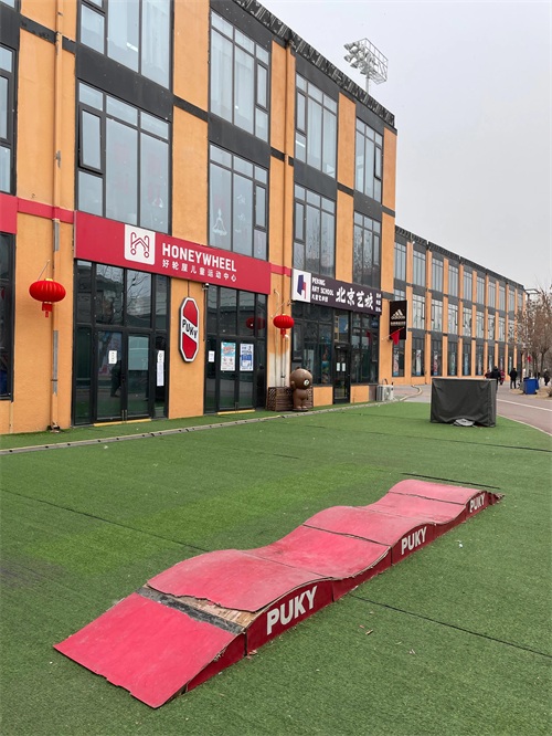 顺着指引走上1500米的环形健身步道,路两旁依次出现了足球馆、格斗健身会馆、篮球馆、网羽馆、轮滑馆、艺校(美术、书法、设计)、跆拳道馆、少儿体能训练馆、VR电竞馆等。