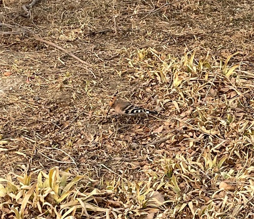 走过这一段来到北侧的步道上,鸟叫声一片。这里有几棵高大的树,小鸟们飞来飞去不知道在忙些什么。除了麻雀和根本不怕人的喜鹊,我还意外地发现了一只戴胜鸟——这可是国家二级保护鸟类,我真想给它挂上这个牌子,以免它被谁给惊扰了。