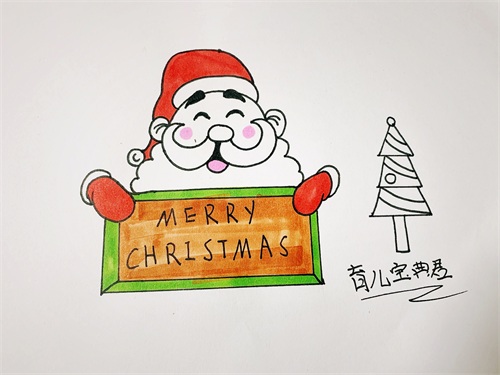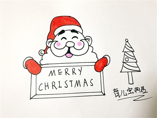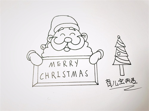 05.举着牌子的圣诞老人线稿画好之后,我们在旁边再加一颗圣诞树,增加节日气氛。