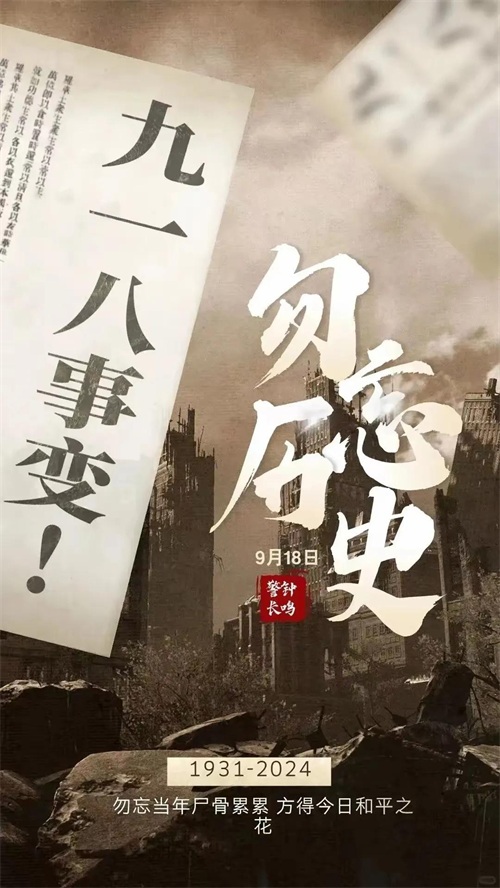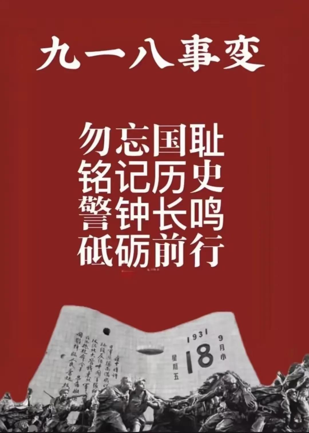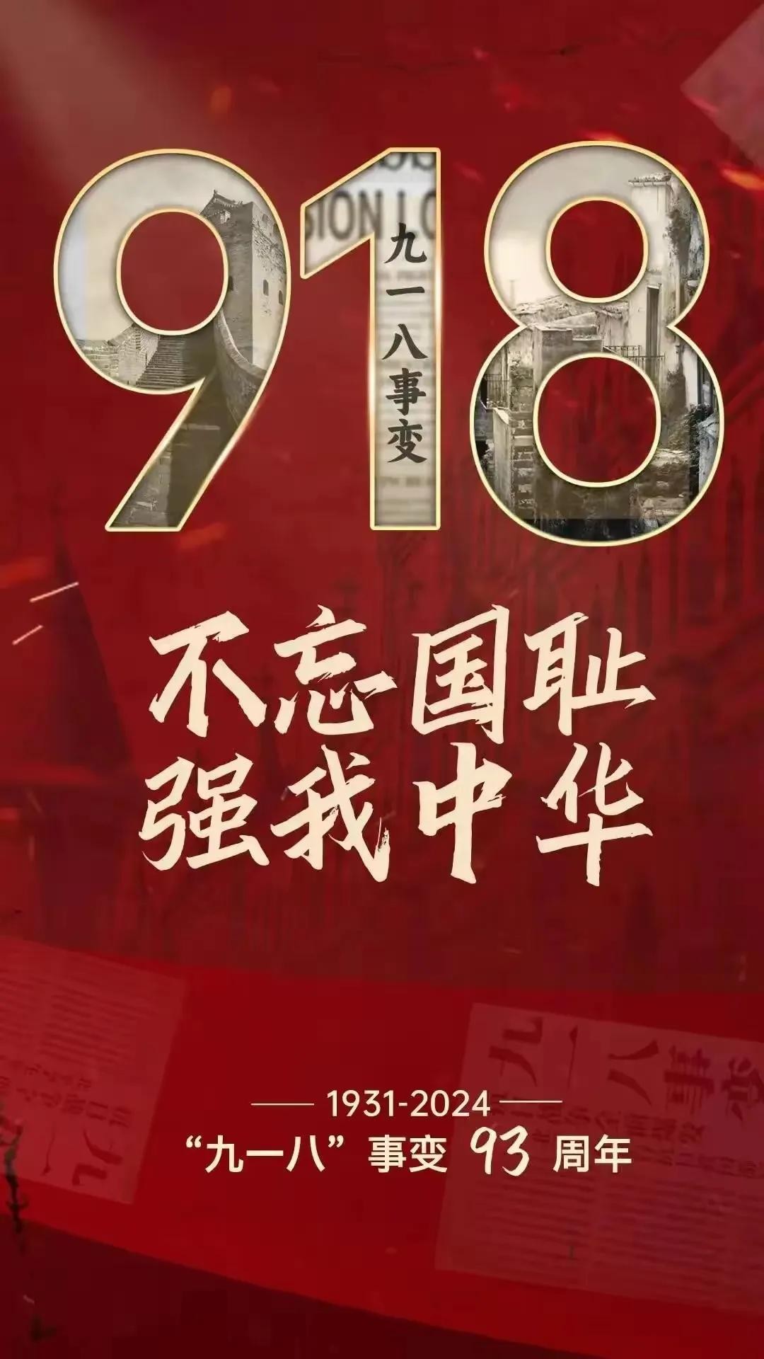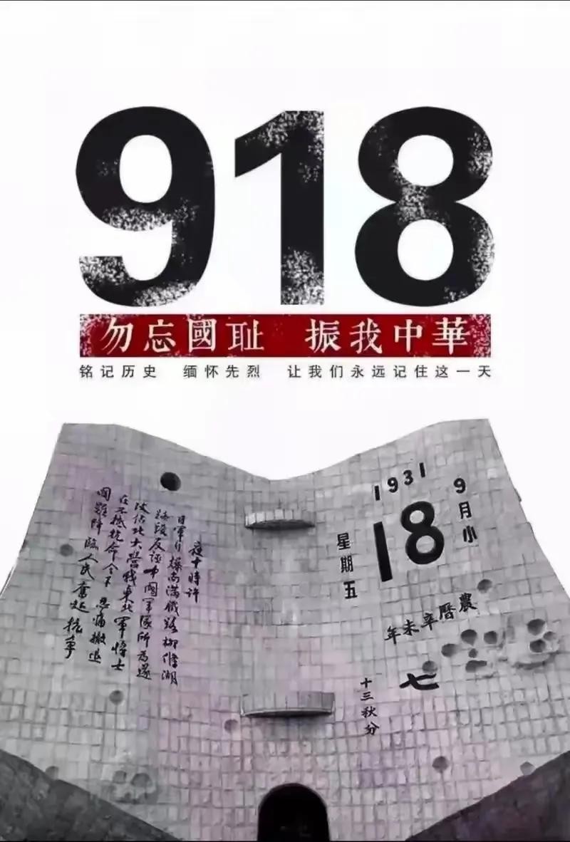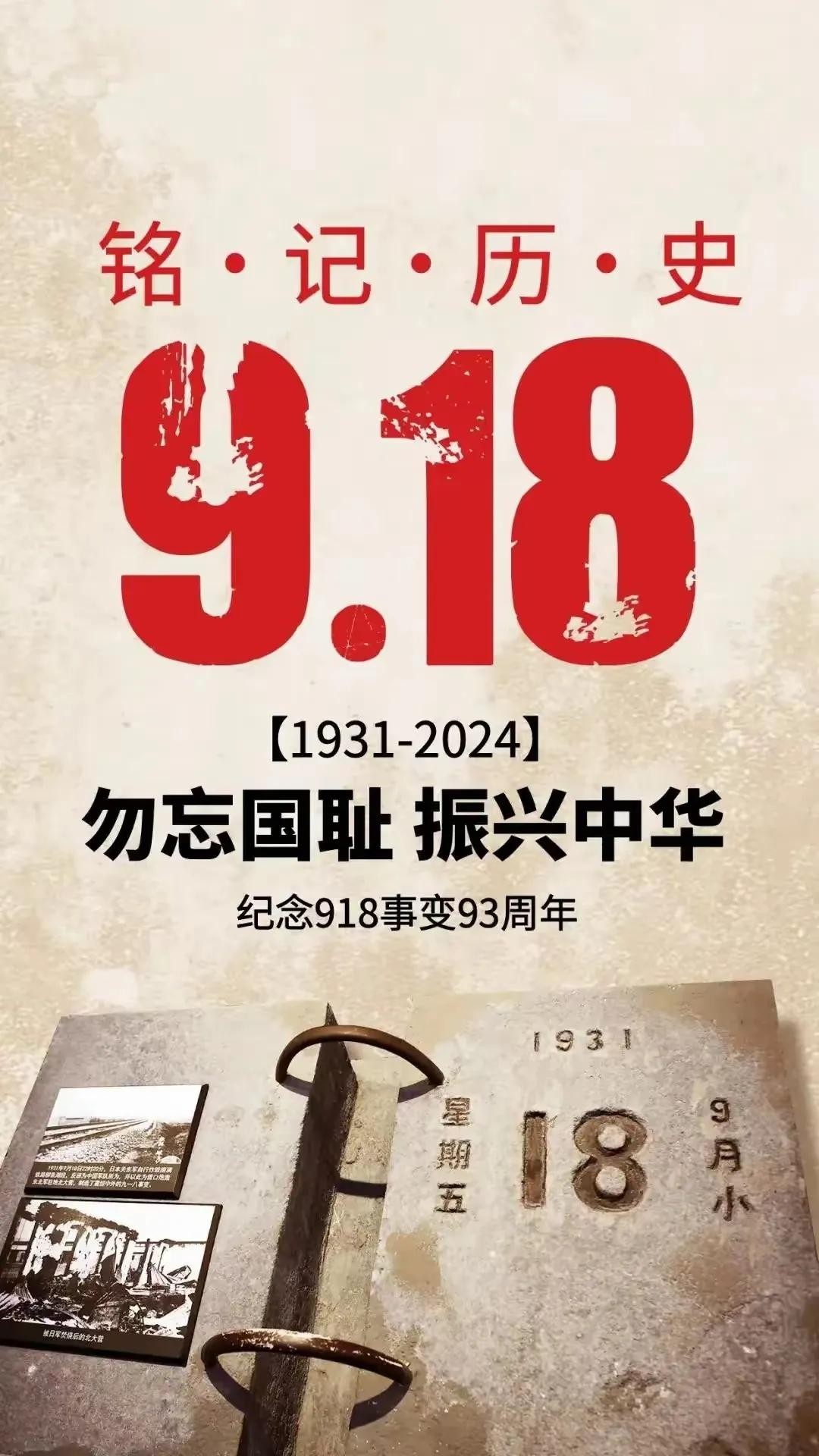 亲爱的朋友们,大家好,今天是2024年的9月18日,农历的8月16,星期三,今天是个特别的日子,是我们每一位国人都不应该忘记的日子,今天是九一八事变93周年纪念日,勿忘国耻,警钟长鸣,我们都应该居安思危。