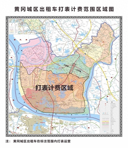 黄冈城区出租车打表计费范围