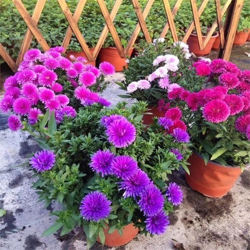 翠菊生长习性:浅根系植物,喜光,喜肥,喜湿润,不耐旱;喜欢肥沃疏松的沙质壤土;怕冷怕热;中小型品种适应能力较差,养护管理要精心。