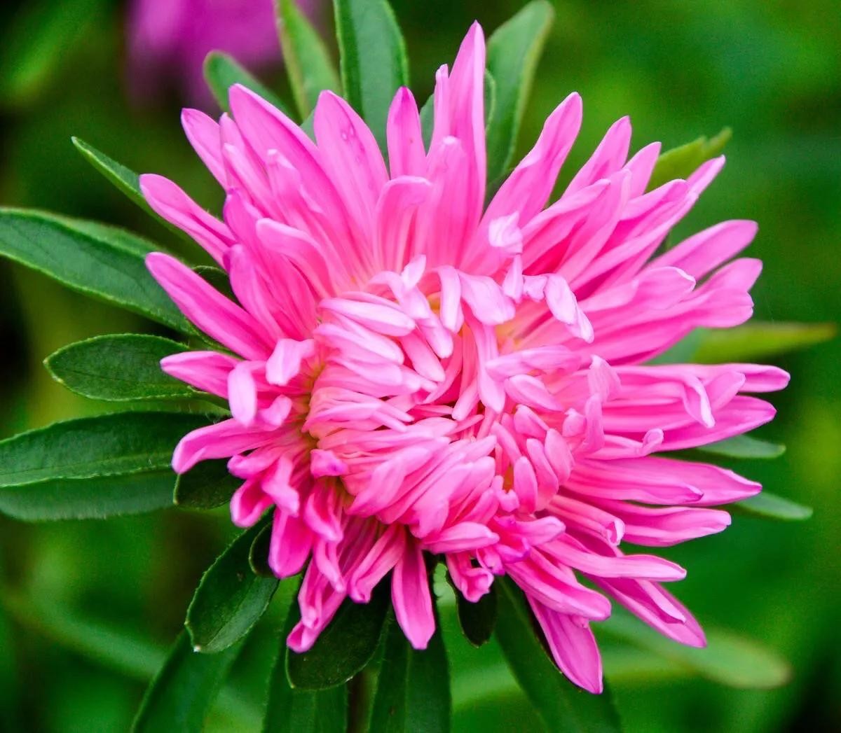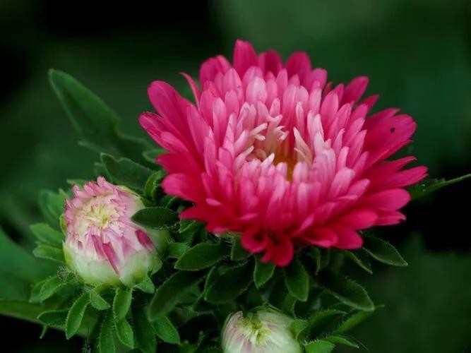 翠菊花朵较大,花径一般有8-10厘米。每一朵花都长在单独的花梗上,这是和其它小菊花不一样的地方。翠菊原本生长在温带,经过不断杂交培育已经出现很多园艺品种。