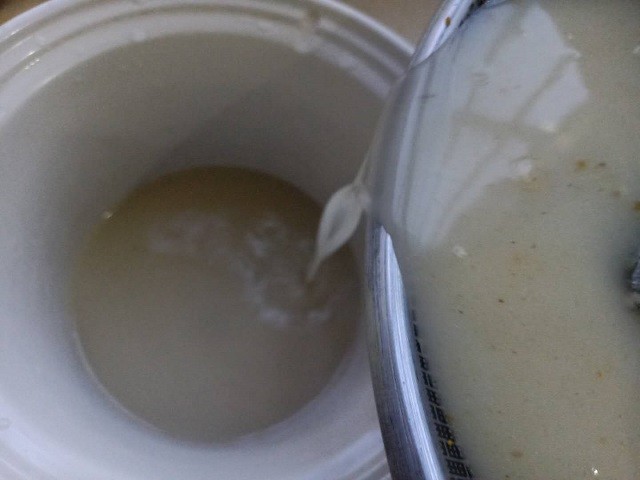 5、把鲫鱼汤汁倒入砂锅里。