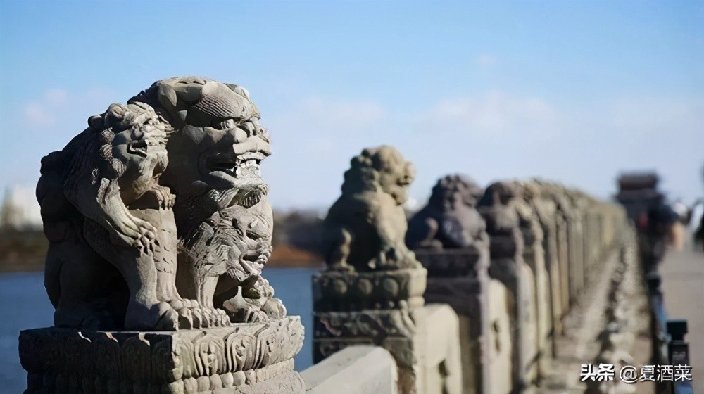 卢沟桥,建于大金国时期,明清两代曾多次修缮或重建。桥全长266.5米,有11个拱券洞门,是北京现存最古老的一座石桥。卢沟桥建筑宏伟,结构精良,并以石刻精美著称,桥上的501个石狮子历经大金至新中国的修补,融汇了各个时期的艺术特征,成为一座自金代以来历朝石雕艺术的博物馆。“卢沟晓月”从金章宗年间就被列为“燕京八景”之一。