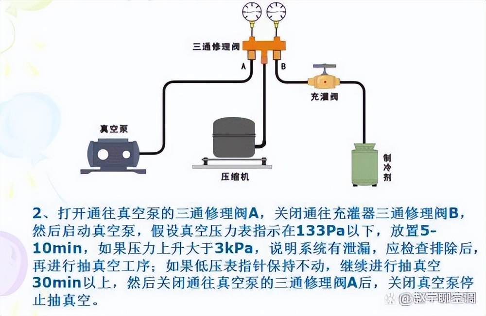 1,如果不抽真空,系统里就会有空气,因为空气不能压缩,进入系统后导致系统压力过高,蒸发压力和冷凝压力全部升高,蒸发压力上升,导致蒸发温度上升,影响空调制冷。