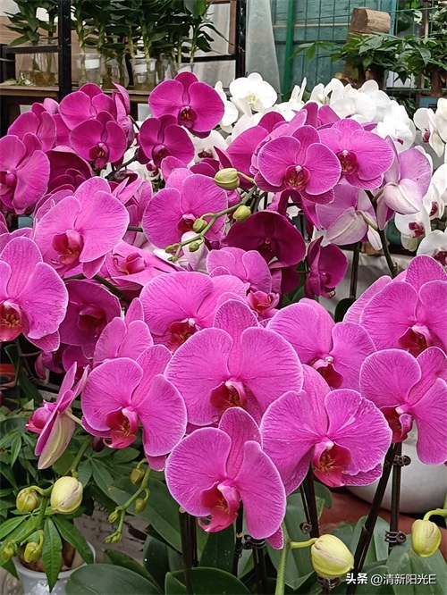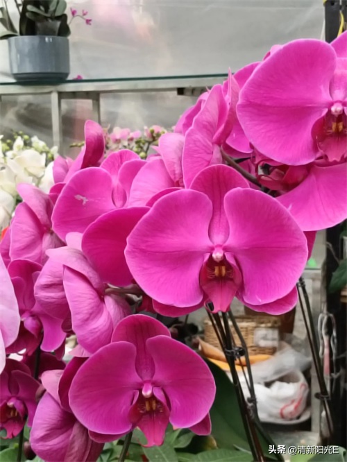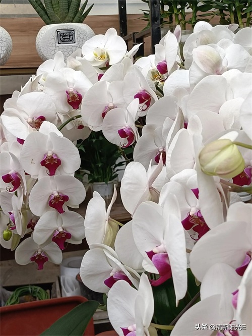 蝴蝶兰的花语是:“清新脱俗、美丽优雅”。见到蝴蝶兰会被它娇艳欲滴的花儿所陶醉,它的象征意义非常好:“幸福、长久、丰盛”。更有:“兰花之皇后”的美名。常见的品种有汕农王子、凤翔、宫粉等蝴蝶兰,适宜室内栽种,花期又长,不管放在客厅、阳台、窗台、卧室都是不错的选择。不仅吸收空气中多余的二氧化碳,还能保持室内空气的湿润度,有利家人的身心健康。也会为您靓丽温馨的家增添蝴蝶飞舞的景象,让您感觉有一种生活在蝴蝶花儿包围的氛围中。