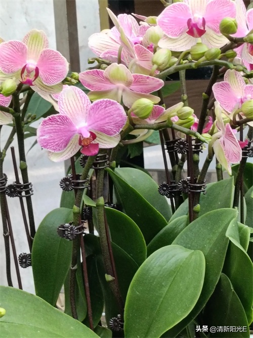 蝴蝶兰在生长的过程中,繁殖方法有播种和组培。如果植株长势好,花朵大花梗就会下垂,可用布条、铁丝、竹竿进行支撑植株。把多余的叶片,黄叶、枯叶清除干净,提高蝴蝶兰的观赏价值,等到花开花谢后可把花梗修剪掉,控制消耗植株的养分。