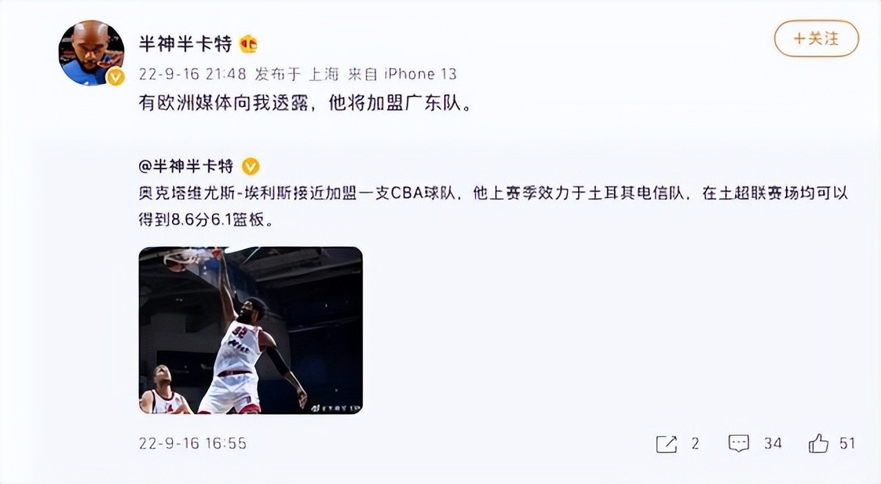 众所周知,广东男篮刚刚引进一名大外援,名叫奥克塔维尤斯-埃利斯,是NBA蒙塔-埃利斯的堂兄,“半神半卡特”报道说:“奥克塔维厄斯-埃利斯,他上赛季效力于土耳其电信队,在土超联赛场均可以得到8.6分6.1篮板。”篮球记者宋翔报道说,奥克塔维尤斯-埃利斯已被广东男篮签约。
