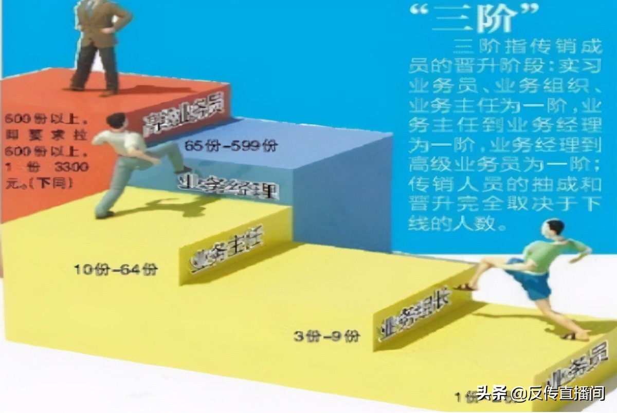 最后如果我们按照这个制度三个人三个人的拉下去,我们会发现人数是几何倍增长的,就会形成一个金字塔,真正赚钱的是塔顶极少数人。你要想从事就必须辞掉工作,很多家庭因为传销从小康变成负债累累,与五级三晋制相关联的就是出局制,当传销人员在给新人涂涂画画时,会讲到依靠五级三晋制的奖励制度最终出局,赢得巨额财富,可能新人在听到这时就被欲望蒙蔽了吧!