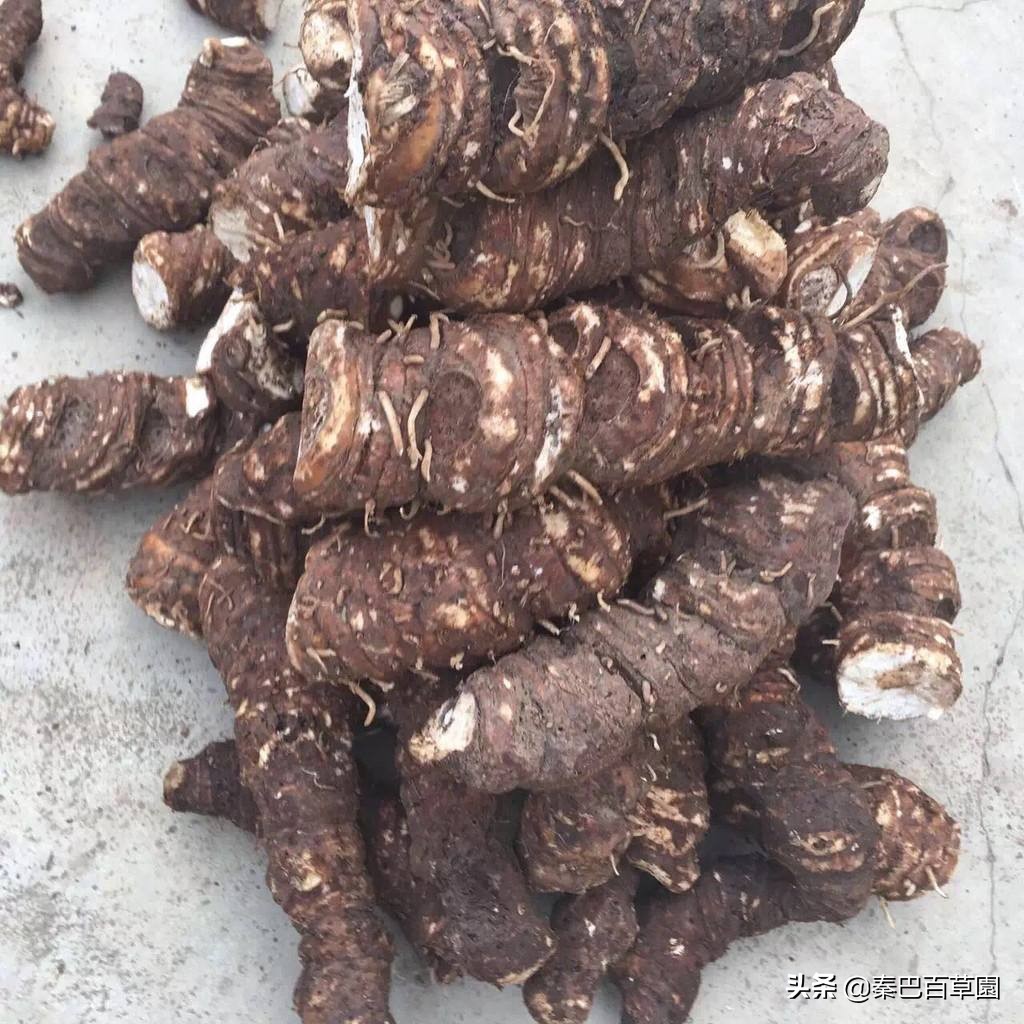 性状:根茎肉质,圆柱形,长4~7厘米,直径约1厘米,表面粗糙,褐色,节稍突出,节间紧密,顶端被有膜质鳞片,一侧着生多数须根,密被白色绒毛。质硬而脆,断面白色。