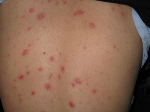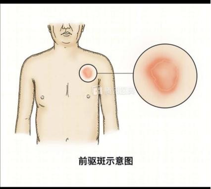 第一阶段(母斑):初起时先出现单个玫瑰色丘疹或斑丘疹,直径可迅速扩大至2~3cm或更大的圆形、椭圆形淡红色斑片,上覆糠秕样细小鳞屑,境界清楚,中央有自愈倾向,此为“原发斑”或“母斑”,多为1个,也可2~3个,常见于躯干或四肢近端。