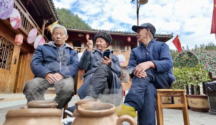 团龙村高龄老人们聚在一起喝土家罐罐茶。彭韵霖 摄