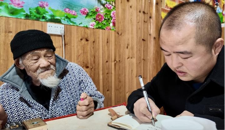 张家清老人讲述梵净山故事。彭韵霖 摄