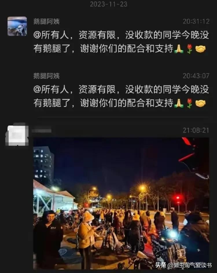 有了美味鹅腿的加持,鹅腿阿姨拥有了很多优质的顶流学校的学生资源。她的微信群朋友圈,比一般人的朋友圈更有价值。