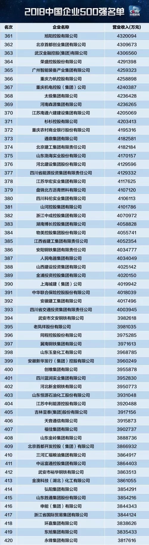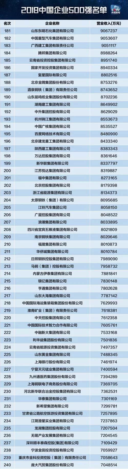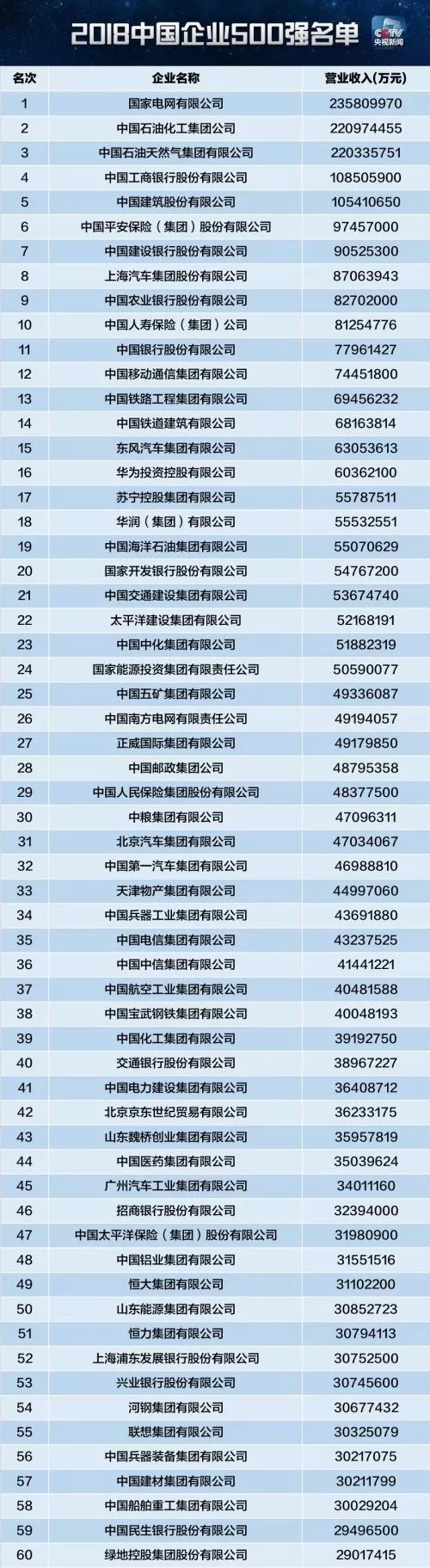 2018中国企业500强新鲜出炉!你的公司上榜了吗?(附图解及全名单)