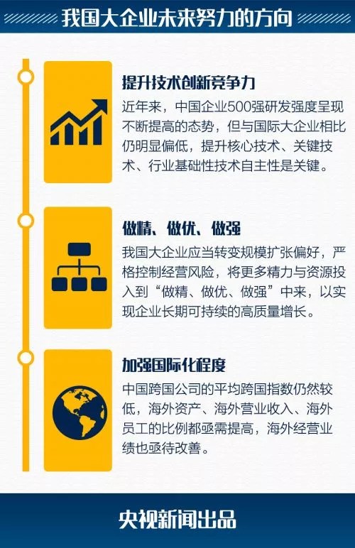 这些数据都说明,500强企业的经济效益明显改善,体现在企业的净利润达到了3.2万亿元,比上年增长13.3%。这方面从企业规模的增长到企业效益的改善,可以说企业呈现了运行效果逐渐提升的过程,真正成为具有全球竞争力的世界一流企业。