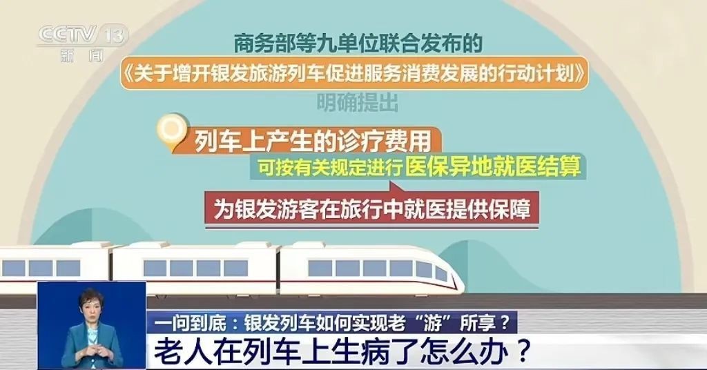 日前,商务部等九单位联合发布的增开“银发列车”的行动计划明确提出,列车上产生的诊疗费用可按有关规定进行医保异地就医结算,为银发游客在旅行中就医提供了保障。