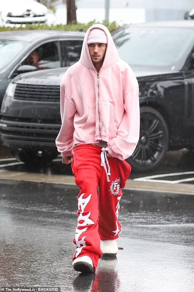 据英媒2月15日报道,比伯当天身穿与情人节主题相呼应的粉红色装扮,头戴浅粉色针织帽,身披拉链式连帽衫,以及一双白色羊毛拖鞋,尽管没有带伞,他却毫不在意雨水淋湿自己的装束。