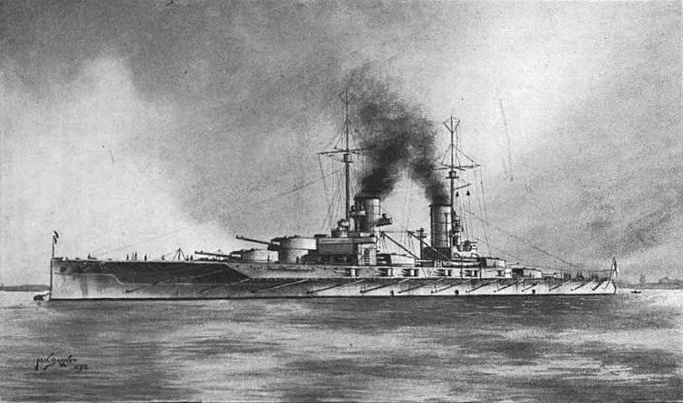 英国无畏号战列舰下水一年后,德国也下水了4艘无畏级战列舰,其标准排水量为18873吨,主炮口径为280毫米,航速为19.5节。德舰侧重防御,宁肯牺牲航速和火炮口径,它的指挥塔装甲厚达400毫米,水线部分300毫米,明显强于英国军舰。面对英国海军的优势,提尔皮茨追求舰艇在战斗中的生存性和稳定性。他的努力收到了效果,在一战中,德国战舰与英国战舰相比生存能力明显占上风。当贝蒂和希佩尔在日德兰海战中交锋时,德军采用近战以很小的代价便击沉了“不懈”号和“玛丽女王”号两艘战列巡洋舰,还重创了贝蒂的旗舰“狮子”号。1911年,提尔皮茨晋升为公海舰队总司令,并荣升为元帅。