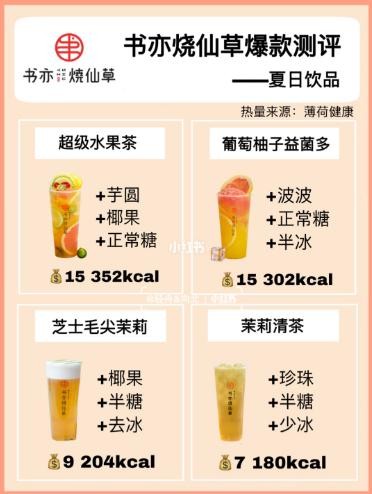 以上就是本期书亦烧仙草爆款饮品测评啦,具体内容难过宝贝们记得看图片哦想了解更多夏季必备饮品/零食/减肥餐点我主页❗️老规矩,点赞➕收藏,下期见