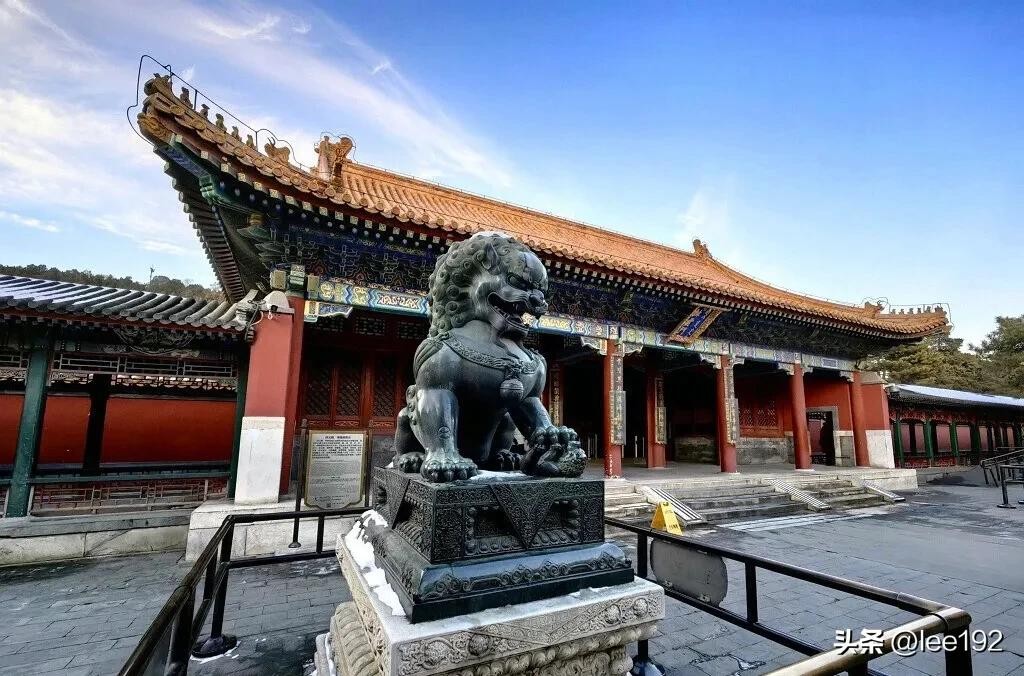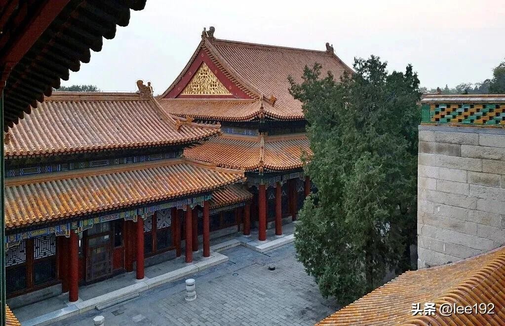 走进二宫门来到排云殿院,院内种植着数株高大树木,正殿即排云殿,东西有配殿,东配殿名为[芳辉]、西为[紫霄],排云殿黄琉璃瓦重檐歇山顶形制为整个颐和园最高等级,殿内又与朵殿夹室连成一体,既有庄严仪式感又兼顾舒适。
