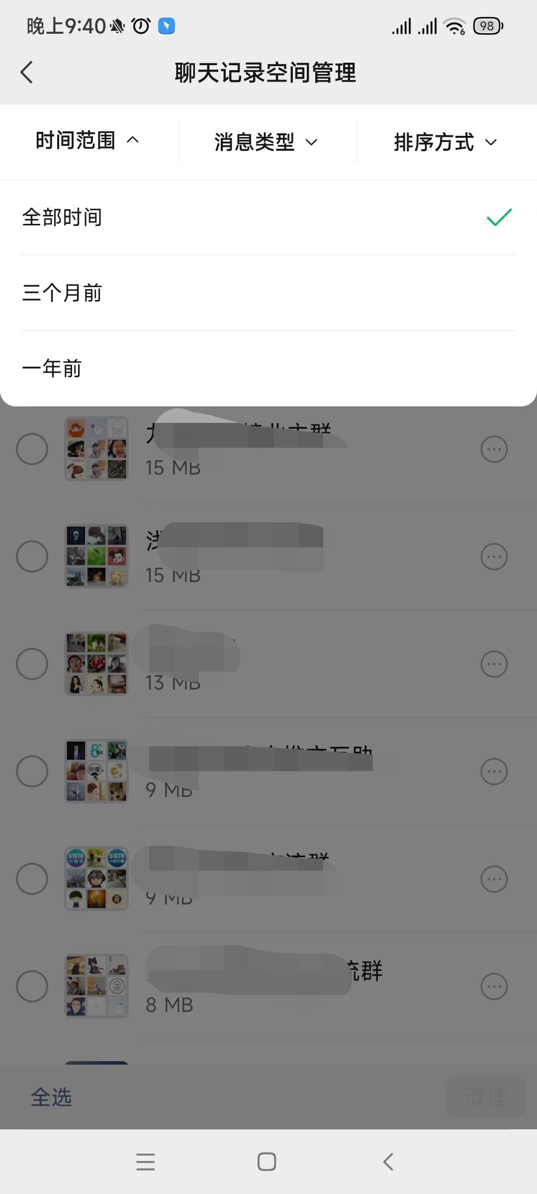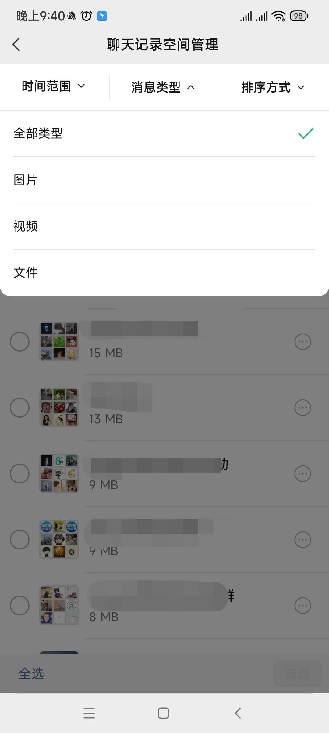 可以看到新增了清理的筛选条件“:时间范围、新消息类型、排序方式,以后想清理微信,大家可以根据时间、类型和文件大小来进行有效选择需要清理的文件了。