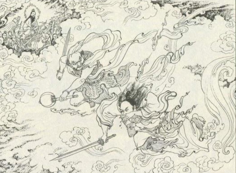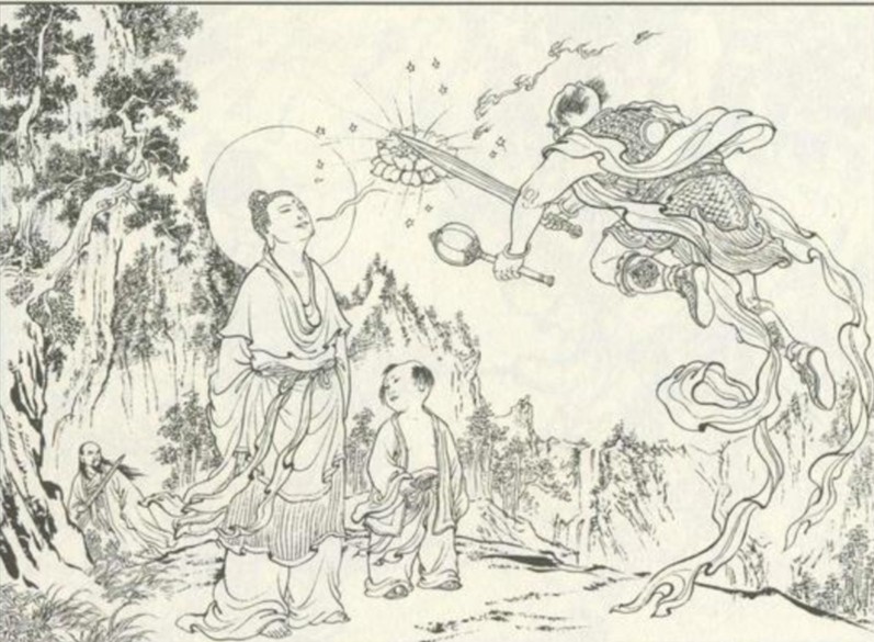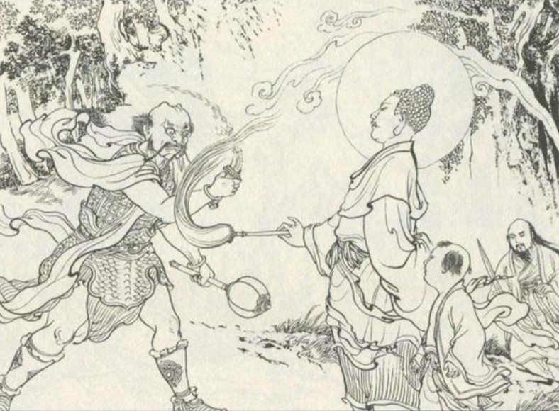 广成子有伤在身,不多时就被乌云仙追上,眼见无可奈何之时,西方教教主准提道人踏祥云而至。准提道人让广成子待在自己身后,笑容满面地挡住了乌云仙,张口说道:“道友请了。”乌云仙眼见正是此人在诛仙阵上伤了自家师父,便不和他客套,仗剑朝准提道人头顶劈下。准提道人微微一笑,轻轻抬起一只手来,只见一朵青莲缓缓托住了宝剑,准提笑道:“道友,你与我西方教有缘,何不皈依我教,共享极乐。”