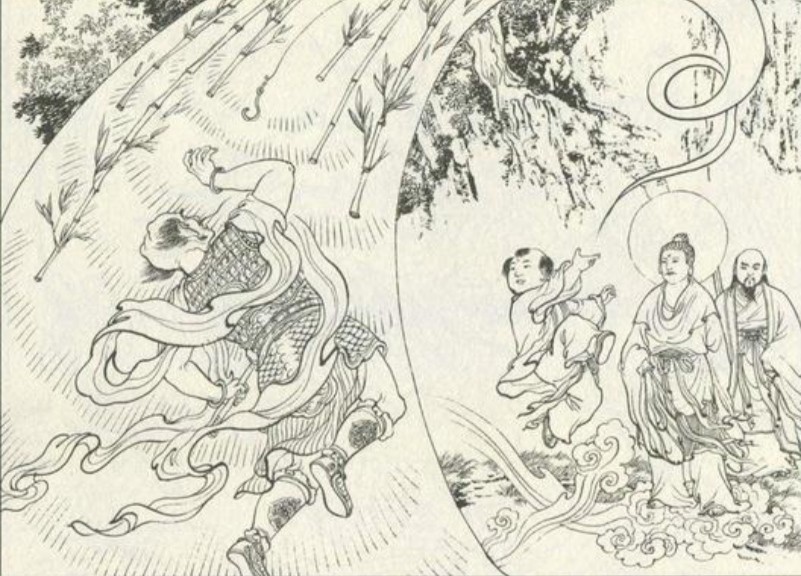 乌云仙见手中只留一个剑柄,被气得怒火中烧,便祭出法宝混元锤砸向准提道人,准提道人见状便驾祥云先行离开,口中喊道:“徒儿在何处?”只见水火童子穿水合服,手持六根清净竹匆忙赶来,他将六根清净竹从空中垂下,竹枝焕发无限霞光华彩,将乌云仙团团裹住。