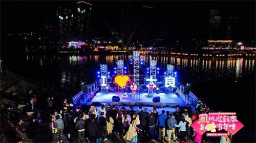 大良水体资源丰富,临水而兴、因水而美,为了让传统节日更有凤城年味,今年花市首次选址云鹭片区的智谷公园。公园背靠湖光山色、河岸风景优美,依托公园优美的自然和人文建筑,精心在生态湖面打造了灯光秀等夜间表演。