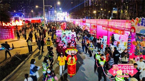 现场,百米特色迎春灯、新春氛围、灵蛇装置、缤纷花海、趣味好玩的新场景茶咖展位、微醺酒吧展位、游戏互动展位……整条花街热闹喜庆、年味十足。此外,醒狮、舞龙、人偶互动、夜光高跷、特色杂耍、乐队表演、花神巡游、非遗快闪等近110场迎春欢乐表演陪伴市民游客。大良街道将为市民游客打造集吃、赏、游、娱于一体的全域新春消费新场景。
