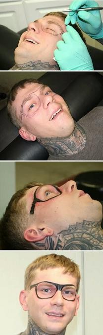 13.这哥们在脸上纹了眼镜~