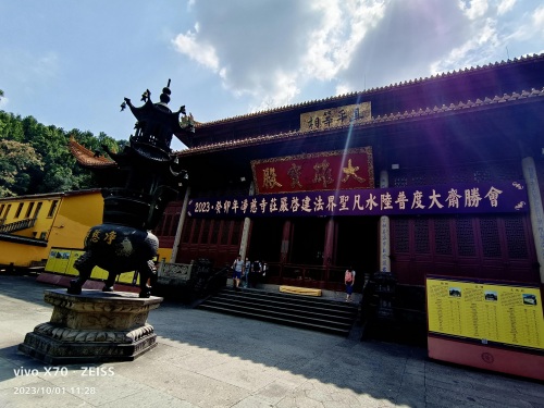 净慈寺依山而建,背靠翠峦,面对碧波,梵宇层叠,宏伟庄严。
