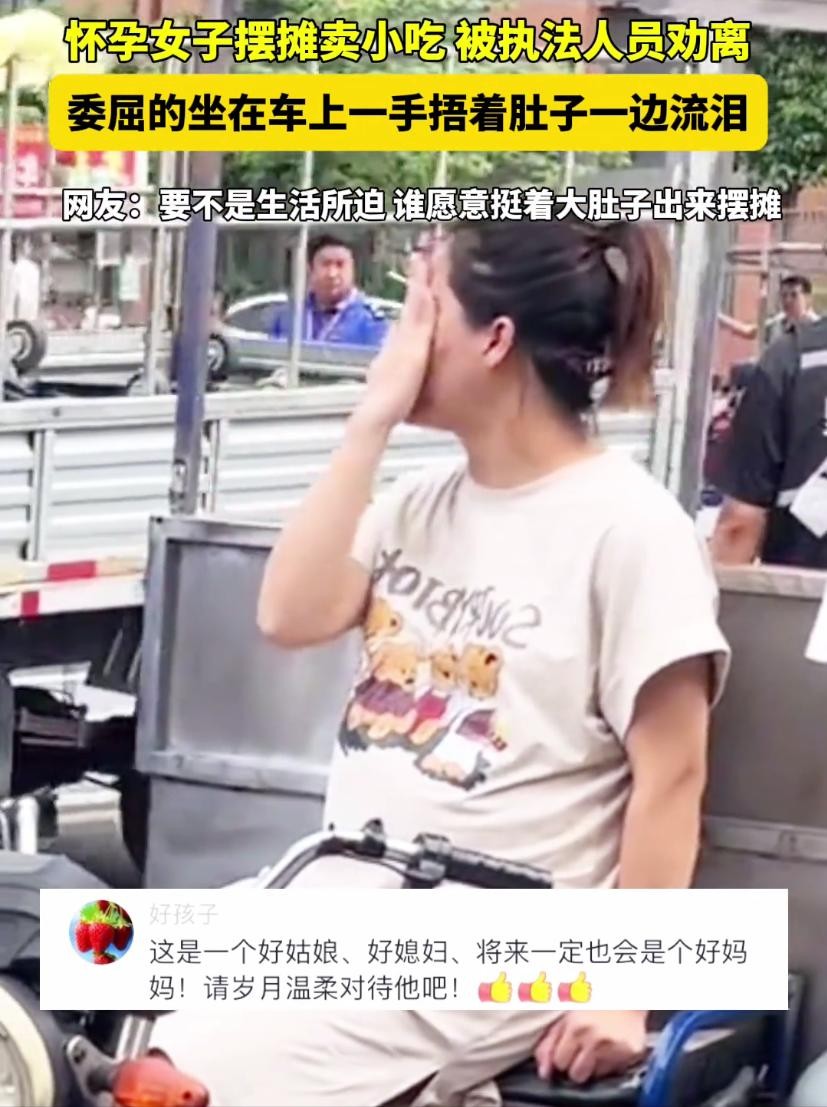 孕妇街头摆摊:多名城管现场劝离,孕妇边擦眼泪边摸肚子网友泪目